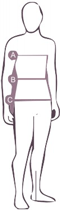 Measurements should be taken directly on your body. A: Chest B: Waist C: Low Hip |